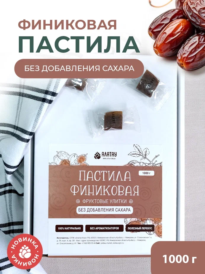 —Пастила без сахара фруктовая натуральная финиковая 1 кг, улитки
